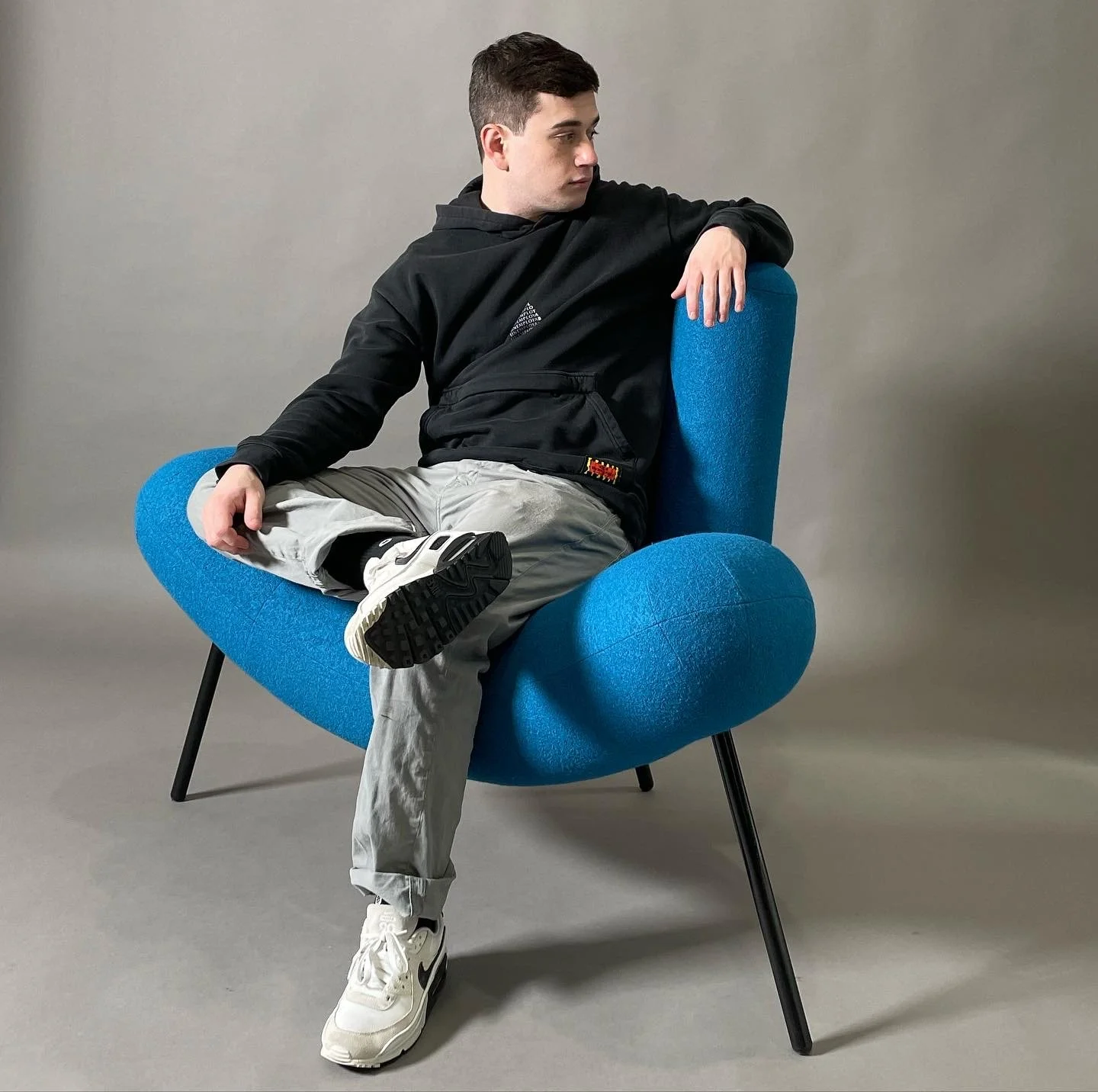 The 111 Chair draws its playful silhouette from Tavill’s three-eyed smiley face logo, blending character with comfort. Influenced by neotenic furniture and his three-dimensional graffiti forms, it transforms sculptural expression into functional design, creating a fun and ergonomic chair to relax in. The piece is crafted with sustainably conscious materials in mind.